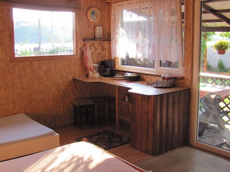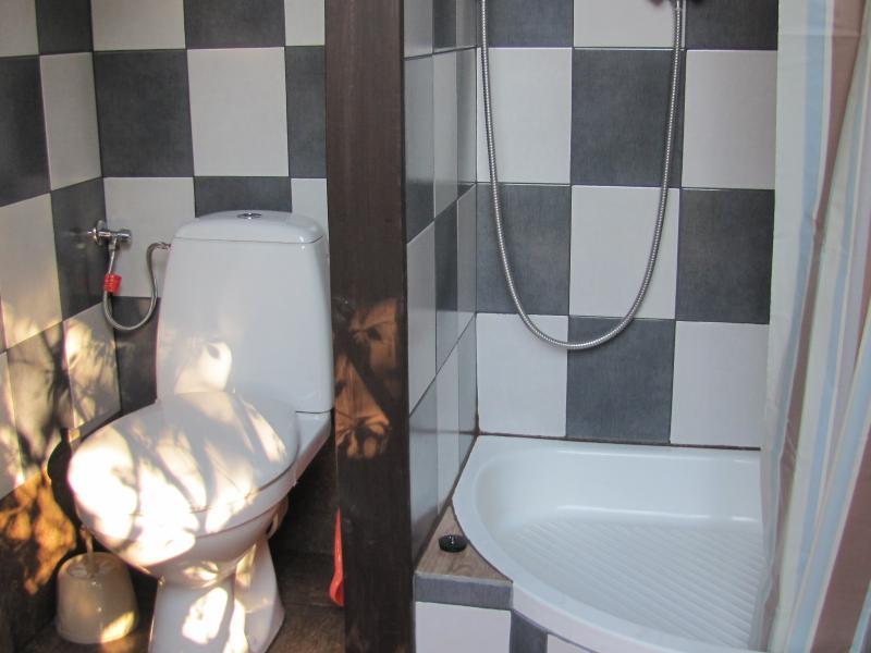 Oprócz domku letniskowego, zapraszamy do naszego budynku mieszkalnego, gdzie oferujemy komfortowe pokoje dla 2, 3 lub 4 osób. Każdy pokój wyposażony jest w własną łazienkę, co zapewnia wygodę i prywatność.