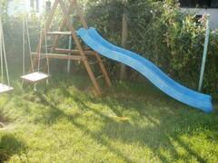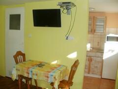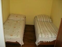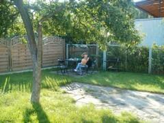 Domek OLIVER to komfortowe, dwupokojowe lokum. W pierwszym pokoju znajduje się wygodna dwuosobowa kanapa oraz telewizor satelitarny, a w drugim dwa pojedyncze łóżka. Kuchnia jest w pełni wyposażona: czajnik, kuchenka, lodówka oraz komplet naczyń i sztućców zapewniają domową wygodę. Na zewnątrz goście mogą korzystać z miejsca do grillowania oraz placu zabaw dla dzieci z huśtawkami, zjeżdżalnią i piaskownicą.