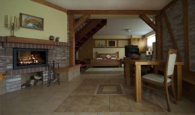 Ośrodek oferuje również komfortowe noclegi dla gości. Do dyspozycji jest 100 miejsc noclegowych, w tym apartamenty wyposażone w aneks kuchenny, TV i kominek. Dodatkowe udogodnienia na terenie osady to: