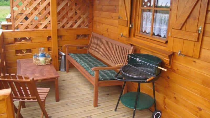 Do każdego domku przynależy zadaszony taras (10 m²) z zestawem mebli z drewna eukaliptusowego oraz indywidualnym grillem. Dodatkowym udogodnieniem są plażowe akcesoria: 7-metrowy parawan, dwa leżaki i koce.