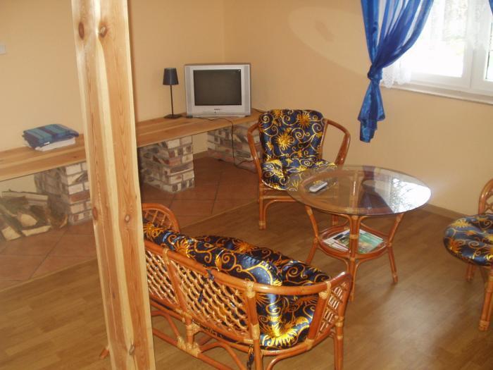 Do dyspozycji gości są cztery samodzielne, pięcioosobowe apartamenty. Każdy z nich składa się z: