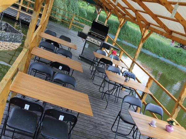Dysponujemy 40 miejscami noclegowymi w komfortowych pokojach 2-, 3- i 4-osobowych, każdy z własną łazienką. Nasza kuchnia serwuje pyszne potrawy regionalne. Mamy specjalne miejsce do grillowania na zadaszonym molo, które pomieści do 70 osób. Sala kominkowa dla 40 osób jest idealna na wieczorne spotkania, a nasza sala bankietowa z nagłośnieniem pomieści około 60 osób.