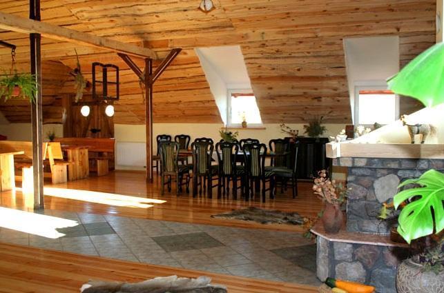 – Przytulną salę z kominkiem, idealną na jadalnię lub organizację uroczystości takich jak wesela, urodziny i szkolenia firmowe,