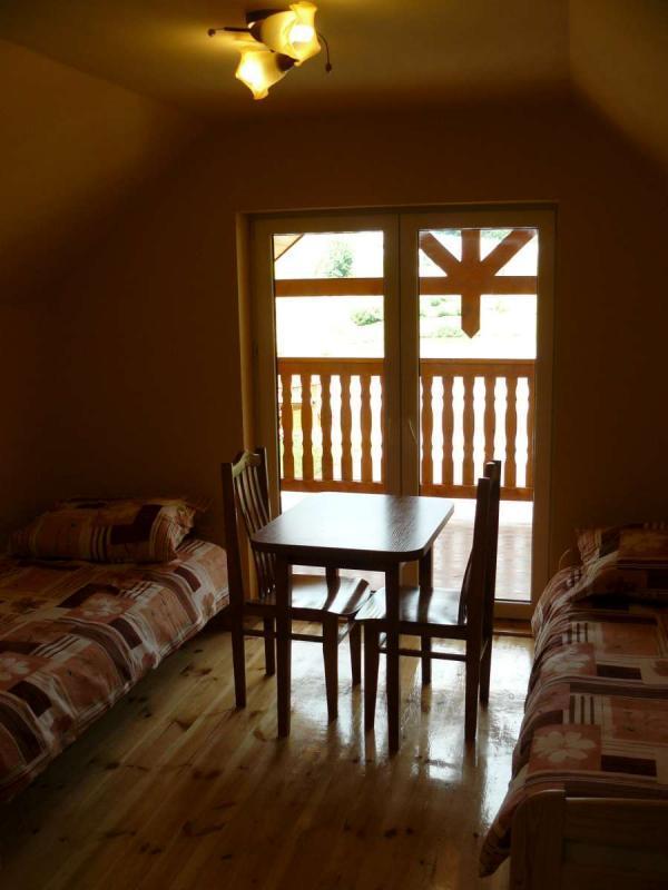 Na terenie ośrodka można rozbić namiot lub podłączyć przyczepę kempingową do prądu i wody. Dla osób ceniących prywatność, oferujemy drewniany domek dwupoziomowy z łazienkami na obu poziomach i kominkiem.