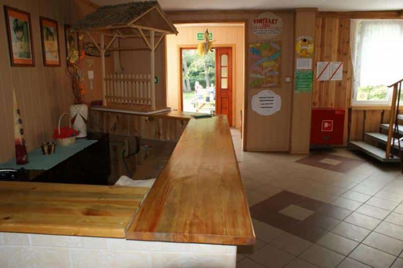 – Drugi budynek: przestronne pokoje 3, 5 i 6 osobowe z aneksami z umywalkami oraz pełnymi węzłami sanitarnymi.