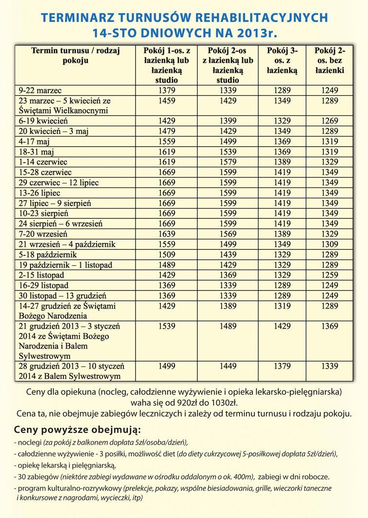 Ośrodek posiada gabinety lekarski i pielęgniarski, oferując szeroki wachlarz zabiegów rehabilitacyjnych. Dla osób z ograniczoną mobilnością organizujemy transport na kąpiele siarkowe i kwasowęglowe do pobliskiego ośrodka. Codzienne zajęcia rekreacyjne obejmują spotkania z lekarzami, prelekcje oraz wieczorki taneczne i konkursowe.