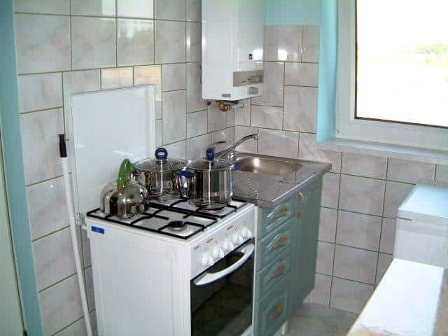 – W pełni wyposażoną kuchnię z kuchenką gazową, piekarnikiem, lodówką, zlewem oraz kompletem naczyń i sztućców.