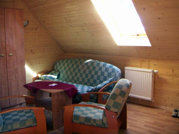 Standardowe wyposażenie pokoi obejmuje: łóżka, tapczany, wersalki, ławy, fotele, szafy, suszarkę do bielizny, pościel oraz koc plażowy. Dodatkowo, nasz dom jest ogrzewany przez cały rok, co sprawia, że można u nas wygodnie wypoczywać o każdej porze roku.