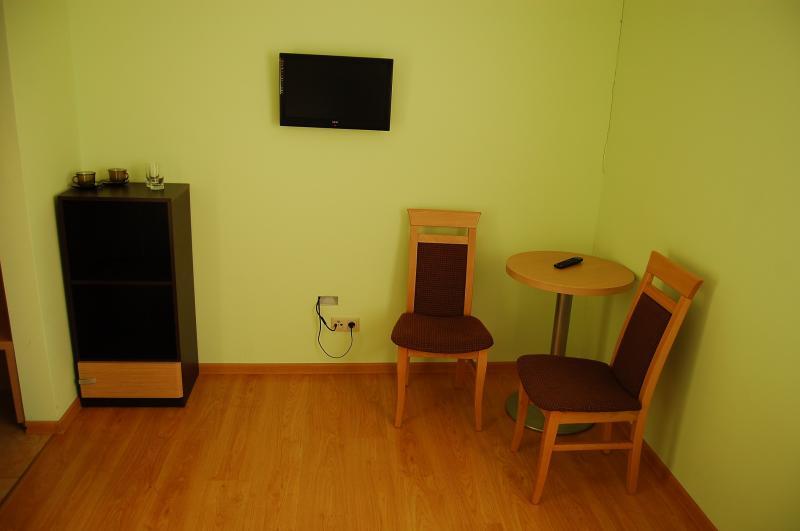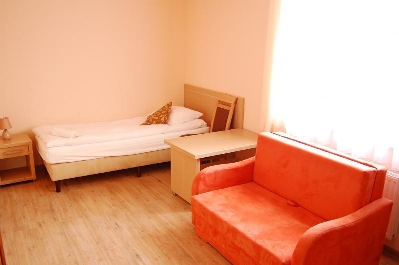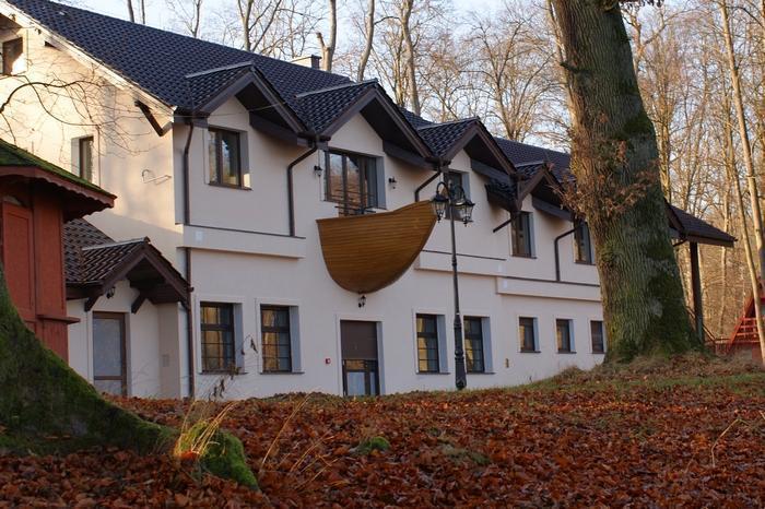 W całorocznym budynku znajdziesz 9 komfortowych pokoi dwuosobowych z łazienkami oraz apartament z pokojem dziennym, aneksem kuchennym i sypialnią. Jeden z pokoi na parterze jest przystosowany dla osób starszych i niepełnosprawnych. Na piętrze znajduje się świetlica z wyjściem na taras, wyposażona w telewizor, odtwarzacz DVD, lodówkę, czajnik elektryczny i niezbędne naczynia. Każdy pokój oferuje widok na jezioro i park, a także dostęp do Wi-Fi i telewizji.
