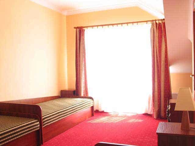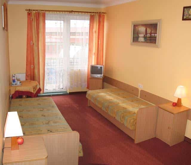 Nasza oferta noclegowa obejmuje 75 miejsc w komfortowych pokojach 2-, 3-, 4- i 5-osobowych. Każdy pokój wyposażony jest w łazienkę, telewizję satelitarną, czajnik bezprzewodowy oraz dostęp do Wi-Fi. Na terenie ośrodka znajduje się stołówka serwująca smaczne, domowe posiłki oraz parking dla gości.