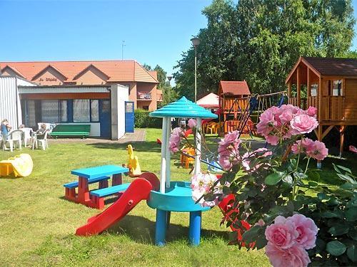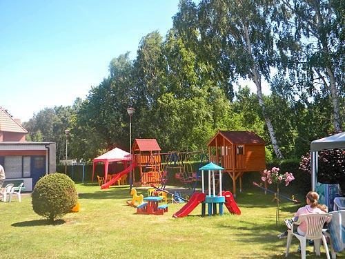 – Plac zabaw dla dzieci z domkami, zjeżdżalniami, huśtawkami, trampoliną i piaskownicą.