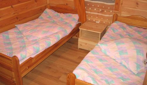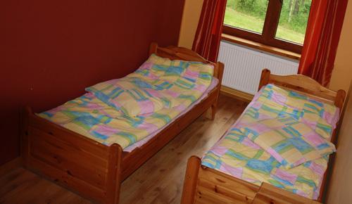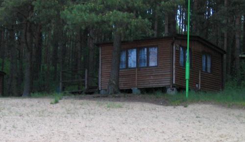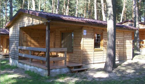 – Domki leśne 4-osobowe z umywalką, toaletą, wspólnymi prysznicami, lodówką, czajnikiem i naczyniami.