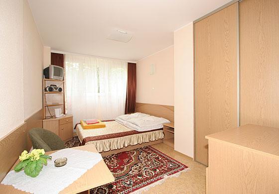 Oferujemy komfortowe pokoje z balkonami, wyposażone w łazienkę, telewizor, radio, czajnik elektryczny, naczynia, sprzęt plażowy oraz suszarkę do ubrań. W apartamentach dodatkowo znajduje się lodówka. Na terenie ośrodka dostępny jest Internet, a budynek wyposażony jest w windę, co czyni go przyjaznym dla osób starszych i z ograniczoną sprawnością ruchową.