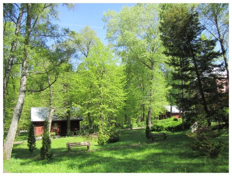 Zapraszamy do naszego malowniczego ośrodka, który rozciąga się na powierzchni 9 hektarów, oferując szeroką gamę atrakcji i udogodnień. Centralnym punktem jest budynek hotelowo-administracyjny, gdzie czekają na Was komfortowe pokoje. Dodatkowo, w Dworku Myśliwskim, zachwycającym swoją architekturą, również można znaleźć przytulne zakwaterowanie.