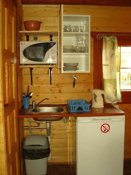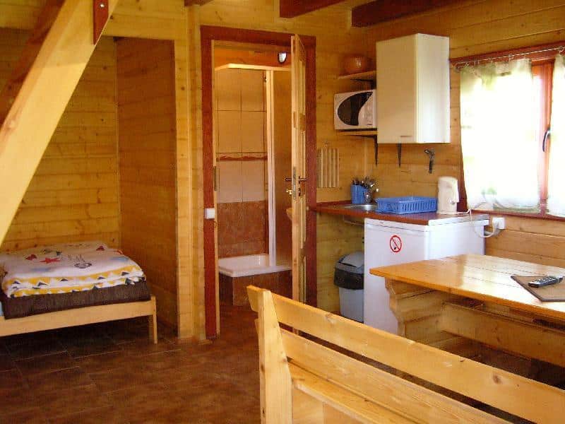 Polecamy Państwu piękne 5-osobowe domki z bali, które znajdują się na zalesionej działce w samym centrum miejscowości, zaledwie 100 metrów od plaży. Każdy domek składa się z przytulnego salonu z aneksem kuchennym, wygodnej sypialni, nowoczesnej łazienki oraz przestronnego zadaszonego tarasu. W domkach znajdują się wszystkie niezbędne udogodnienia, takie jak lodówka, czajnik, kuchenka mikrofalowa, naczynia i sztućce.