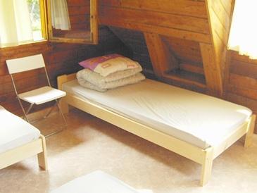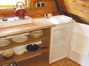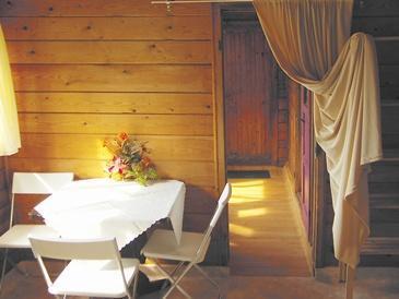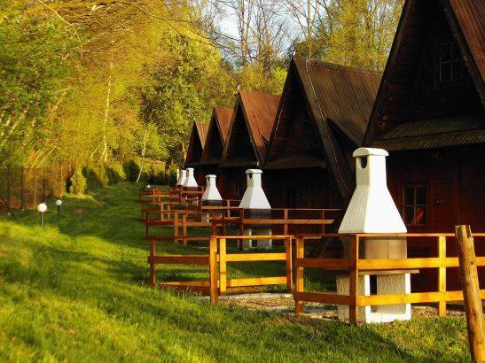 Oferujemy 45 miejsc noclegowych w komfortowych, pięcioosobowych domkach letniskowych. Każdy domek wyposażony jest w funkcjonalną kuchnię, a przed nim znajduje się przytulny ogródek z kamiennym grillem, stolikiem i ławkami. Dla ochrony przed słońcem lub deszczem zapewniamy rozkładany parasol.