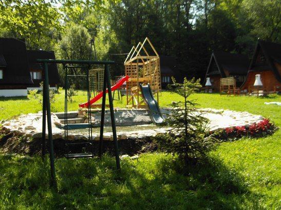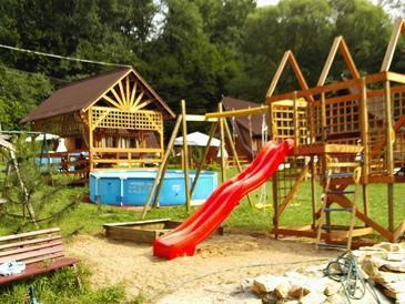 Dla miłośników wodnych atrakcji przygotowaliśmy duży basen o średnicy 5 metrów oraz specjalną zjeżdżalnię prowadzącą prosto do wody. Dzieci mogą korzystać z fontanny wodnej i zjeżdżalni do piaskownicy. Na miłośników sportu czeka trampolina oraz lina “slack-line” zawieszona kilka metrów nad ziemią.