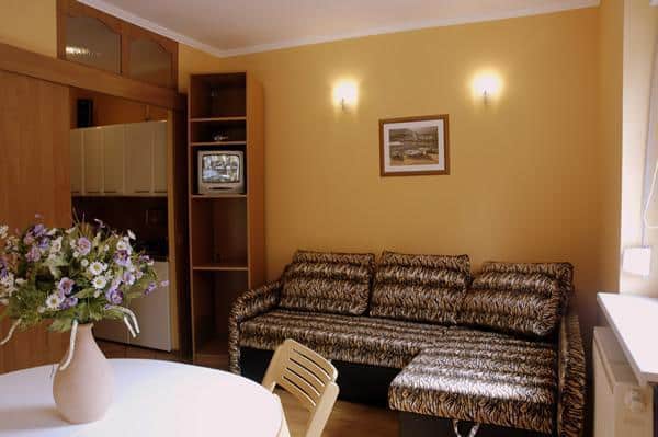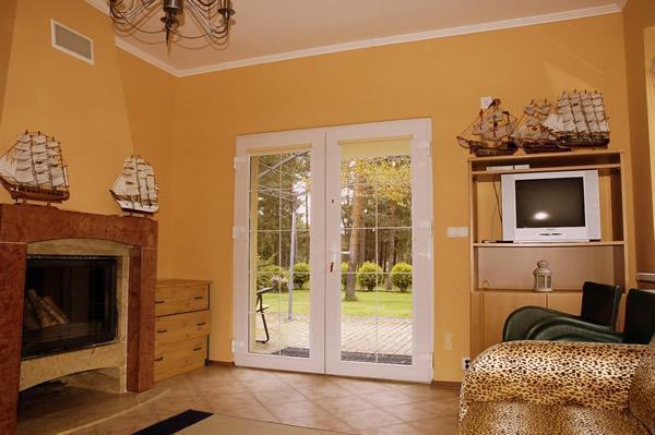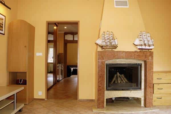 – **Apartament 2-pokojowy z łazienką i dużym tarasem**: W apartamencie znajdują się dwa pokoje z aneksem kuchennym, kominkiem, jacuzzi oraz prysznicem. Tarasy z trawnikiem zapewniają relaks na świeżym powietrzu.