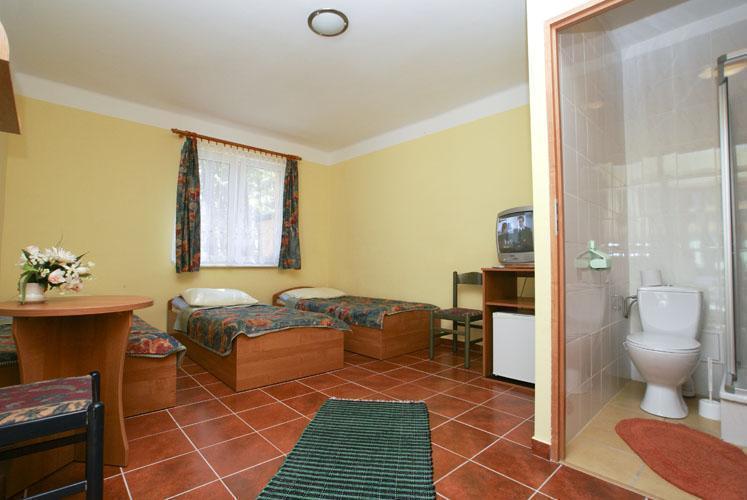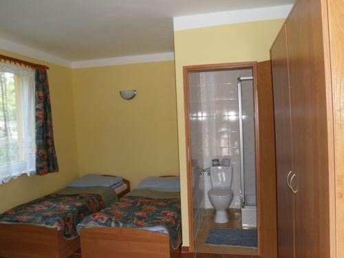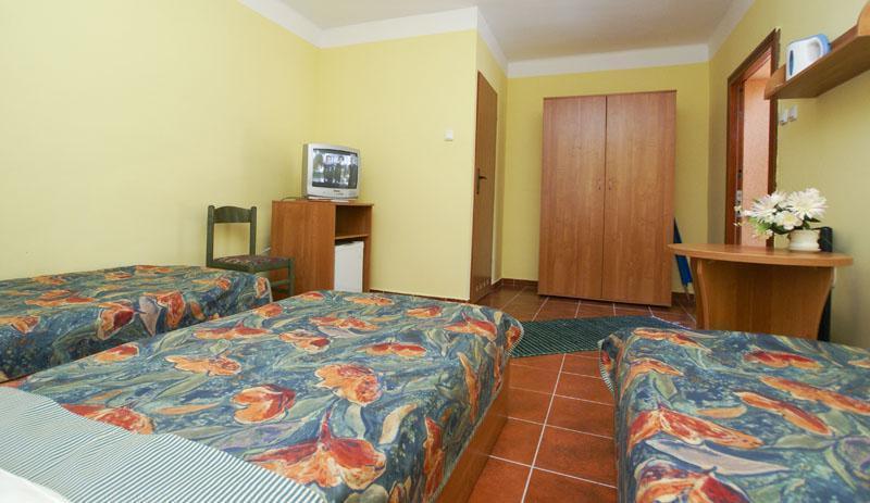 Nasz ośrodek oferuje aż 170 miejsc noclegowych w pokojach 2-, 3- i 4-osobowych, które są wyposażone w łazienkę, telewizor, lodówkę oraz parawan. Dodatkowo, dysponujemy 105 miejscami w pawilonie z łazienką i balkonem oraz 120 miejscami w domkach murowanych typu studio z trzema pokojami, dużym holem i częścią sanitarną.