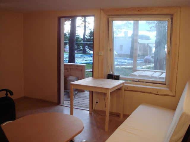 Każdy domek wyposażony jest w łazienkę, a niektóre dodatkowo w aneks kuchenny, co zapewnia wygodę i swobodę podczas pobytu.