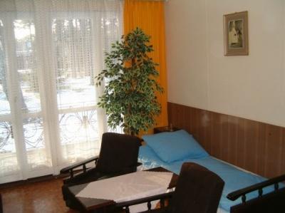 – **Domki campingowe (3-osobowe)**: Jednopokojowe, z tarasem, wyposażone w łazienkę, lodówkę, czajnik, telewizor, dwa tapczany i wersalkę. Na tarasie znajdziesz stolik i krzesła.