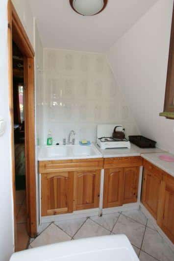 – kompletną kuchnię z kuchenką gazową, chłodziarką i zlewozmywakiem,