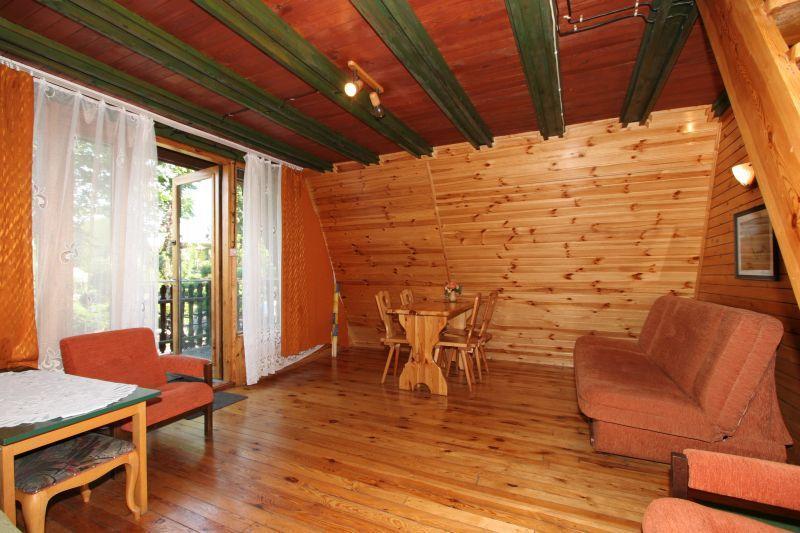 Każdy domek ma powierzchnię 60 m² i jest ogrzewany, co zapewnia komfortowy pobyt przez cały rok. Domki pomieszczą do 7 osób i są wyposażone w:
