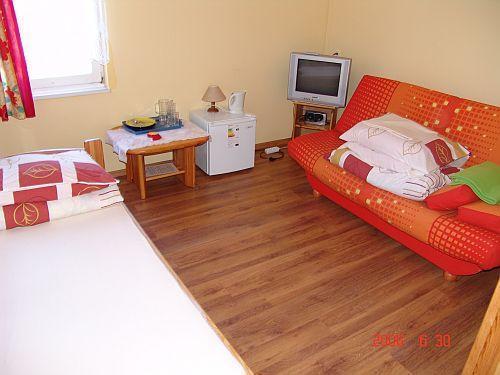 – Pokoje w domkach w zabudowie bliźniaczej (2-3 osobowe),