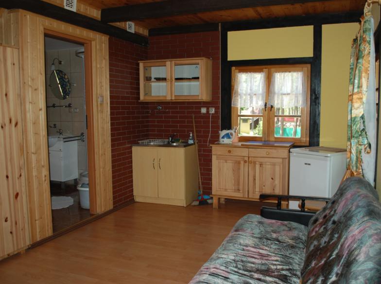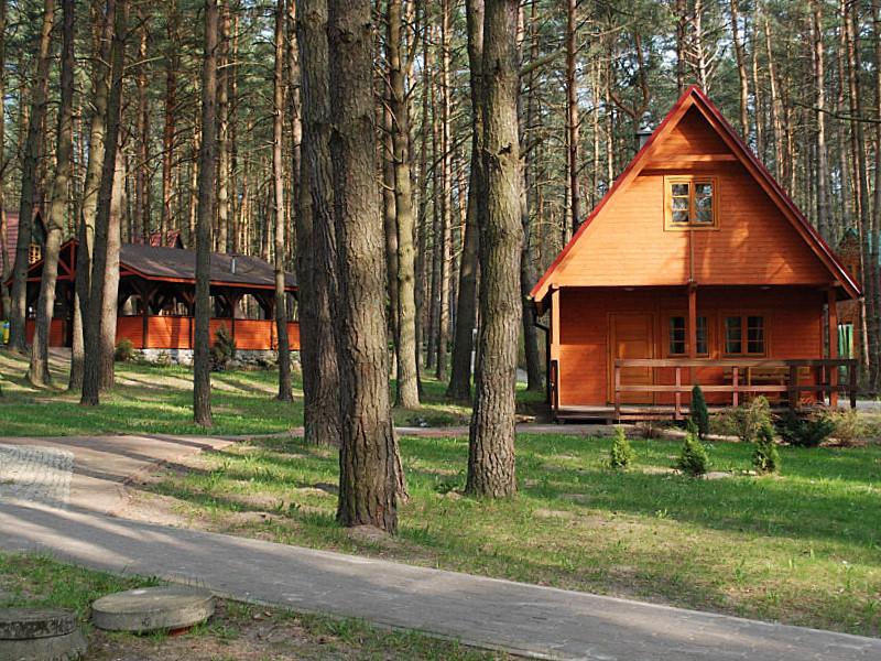 – 27 drewnianych domków cztero- i pięcioosobowych, każdy z łazienką z prysznicem,
