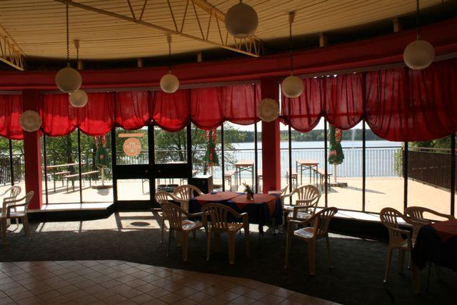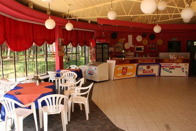 – Kawiarnię z dużym tarasem widokowym na jezioro, gdzie w sezonie wakacyjnym organizowane są dyskoteki i karaoke. To doskonałe miejsce na spotkania firmowe i rodzinne.