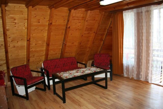 – Domki 4-5 osobowe piętrowe typu Brda: 2 sypialnie 2-osobowe na górze, na dole duży pokój dzienny, łazienka, aneks kuchenny
