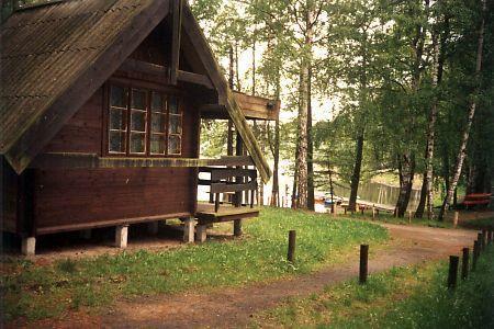 – Drewniane domki campingowe dla 3 lub 4 osób z dwoma pokojami, łazienką, lodówką, czajnikiem, grillem i zadaszonym tarasem z widokiem na jezioro,