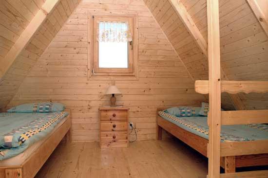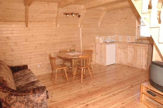 W domku na piętrze znajdują się dwie oddzielne 2-osobowe sypialnie oraz balkonik, na parterze domku salonik TV, 2 lub 3 dodatkowe miejsca sypialne, aneks kuchenny wyposażony w lodówkę, kuchenkę gazową i czajnik bezprzewodowy oraz niezbędne naczynia i sztućce. Łazienka z kabiną natryskową, umywalką i ubikacją. Parking na ogrodzonym i oświetlonym terenie ośrodka.