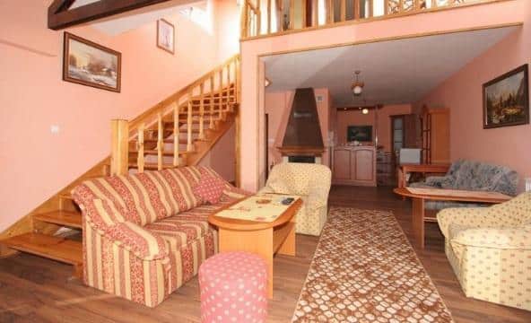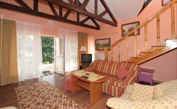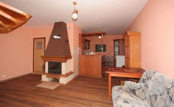 Oferujemy komfortowe zakwaterowanie w całorocznych domach dwupoziomowych dla maksymalnie 6 osób. Na parterze znajduje się przytulny salon z kominkiem, w pełni wyposażona kuchnia oraz łazienka. Na piętrze mieszczą się dwie oddzielne, dwuosobowe sypialnie.