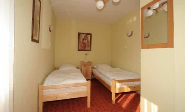 Dla par przygotowaliśmy dwuosobowe pokoje z aneksem kuchennym i łazienką. Wyposażenie obejmuje:
