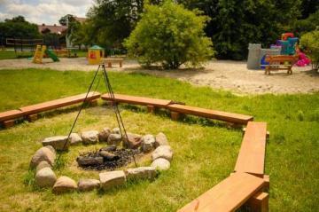 Nieodłącznym elementem każdego domku jest zadaszony taras z grillem, który idealnie nadaje się na wieczorne spotkania na świeżym powietrzu. To doskonałe miejsce, by cieszyć się pięknem otaczającej przyrody i wspólnie spędzać czas.