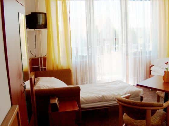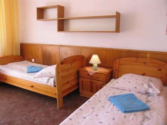 – 214 miejsc w pokojach 2- i 3-osobowych z łazienką i balkonem. Każdy pokój wyposażony jest w telewizor, radio, leżak i wiatrochron.