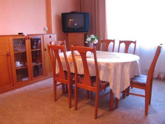 – 20 miejsc w 6 apartamentach dla 2-4 osób, składających się z dwóch pokoi z podwójnym łóżkiem i sofą. Apartamenty posiadają telewizor, radio, telefon, lodówkę, leżak i wiatrochron.