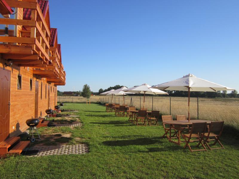 Nasze domki znajdują się na ogrodzonym terenie o powierzchni 1700 m2, gdzie do dyspozycji gości jest również parking. Spacer na piaszczystą, szeroką plażę przy wejściu nr 12 w Jarosławcu zajmuje tylko 10 minut.