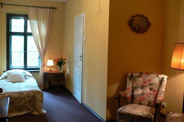 W oficynie pałacowej oraz zabudowaniach folwarcznych znajdują się pokoje gościnne – mieszkania, oferujące 20 miejsc noclegowych. Można z nich korzystać przez cały rok.