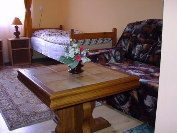 Nasze pokoje są wyposażone w telewizor i radio, zapewniając komfortowy pobyt. Na terenie obiektu znajduje się plac zabaw dla dzieci, boisko do siatkówki i badmintona, a także miejsce na ognisko i grill. Goście mogą korzystać z altany ogrodowej oraz opcji rozbicia namiotu czy ustawienia przyczepy campingowej. Oferujemy także możliwość wykupienia całodziennego wyżywienia.