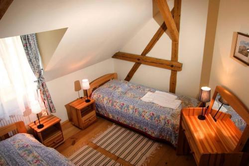 Pałac Łomnica to prawdziwa perełka, składająca się z Dużego i Małego Pałacu, otoczonych romantycznym angielskim parkiem oraz tętniącym życiem folwarkiem. W Małym Pałacu znajduje się kameralny hotel z 12 pokojami i 5 rodzinnymi apartamentami. Każdy pokój jest unikalnie urządzony, odzwierciedlając historyczny charakter miejsca. Znajdziesz tu starannie dobrane sztychy, śląskie lniane zasłony i biedermeierowskie kotary. Pokoje są zróżnicowane pod względem wielkości i ceny, a w dużych pokojach można znaleźć miejsce na fotel i biurko do pracy. Pokoje są wyposażone w TV, a bezpłatny internet dostępny jest w holu hotelu.