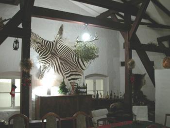 – dwa salony, biblioteka, bar i myśliwski pokój,