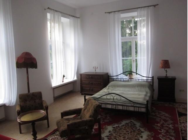 – Wyposażenie: podwójne łóżko, rozkładana kanapa, stoliki, komódki, wiekowa toaletka