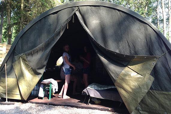 Oferujemy 60 miejsc noclegowych w namiotach wojskowych, które są dostosowane do każdych warunków pogodowych. Każdy namiot o powierzchni 24 m² pomieści do 6 osób i jest wyposażony w łóżka polowe z kocami. Dodatkowo, istnieje możliwość rozbicia własnego namiotu lub ustawienia campera.