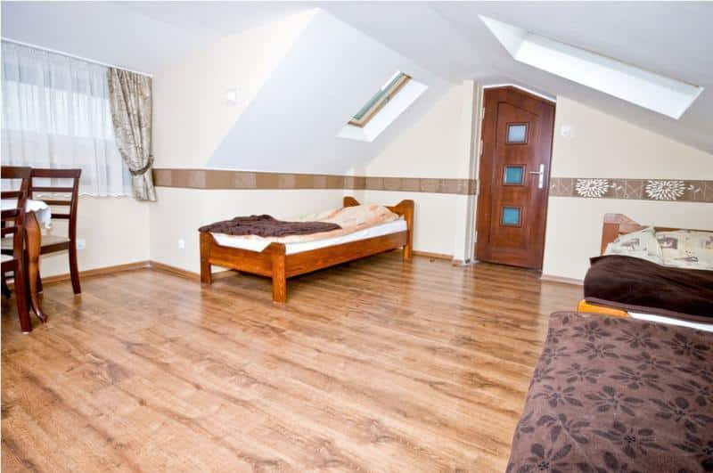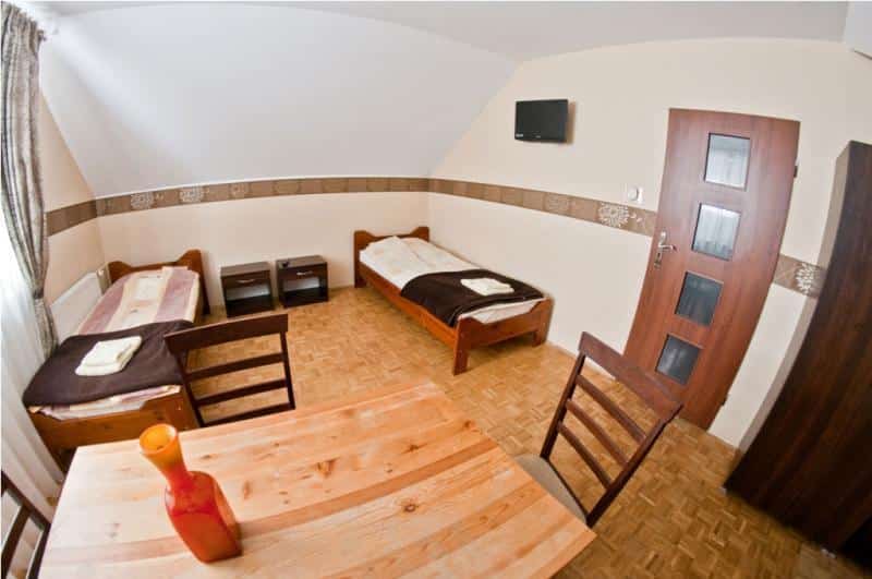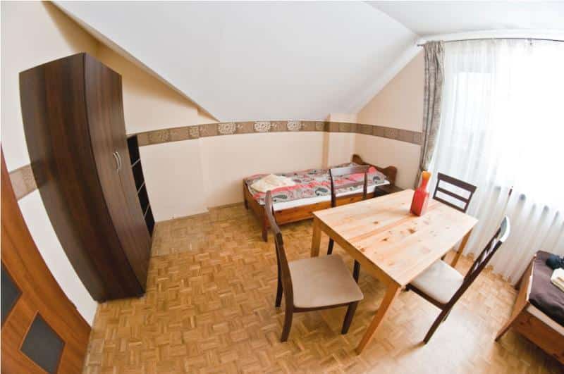 Pensjonacik dysponuje różnorodnymi pokojami: jednoosobowymi, dwuosobowymi oraz czteroosobowymi, łącznie oferując 24 miejsca noclegowe. Każdy pokój wyposażony jest w telewizor, szafę na ubrania z wieszakami oraz nocną szafkę. Wygodne łóżka zawsze czekają z czystą pościelą, zapewniając komfortowy wypoczynek. Do dyspozycji gości są również cztery wspólne kuchnie i łazienki, które są starannie utrzymane w czystości.