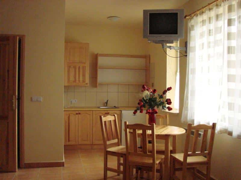 Pensjonat, zbudowany w 2004 roku, to idealne miejsce na relaks i wypoczynek. Oferuje 14 przytulnych pokoi, z których każdy ma balkon z pięknym widokiem na okolicę. Komfort i prywatność zapewniają własne węzły sanitarne, a lodówka i zlewozmywak w każdym pokoju ułatwiają przygotowywanie posiłków.