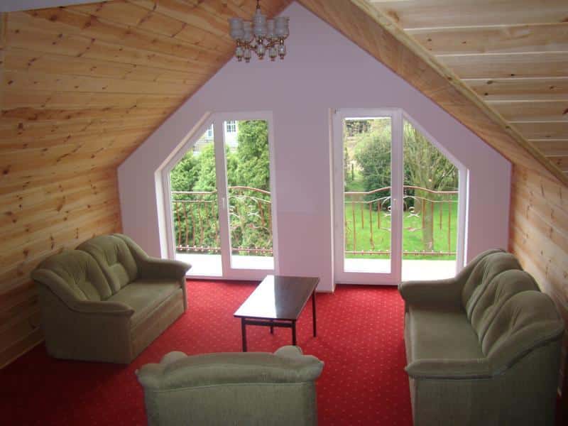 – Pokoje w budynku głównym, zapewniające 15 komfortowych miejsc noclegowych z pokojem dziennym i łazienkami