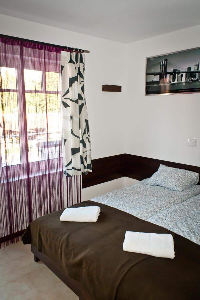 – 4 pokoje o podwyższonym standardzie z łożem małżeńskim, łazienką (prysznic, umywalka, WC), TV, Internetem oraz balkonem,