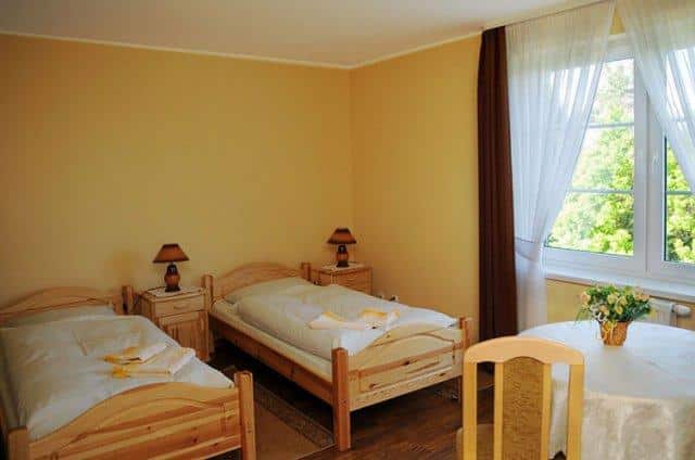Pensjonat “Hubertus” to zabytkowy dworek, w którym znajduje się 14; 1 i 2 osobowych pokoi komfortowo wyposażonych, łącznie 24 miejsca noclegowe, restauracja, bar, obszerny hall i ogródek piwny. Oprócz tego jest 12 bungalowów 2-3 osobowych, każdy z osobnym wejściem, przedpokojem, łazienką z prysznicem, pokojem oraz balkonem.